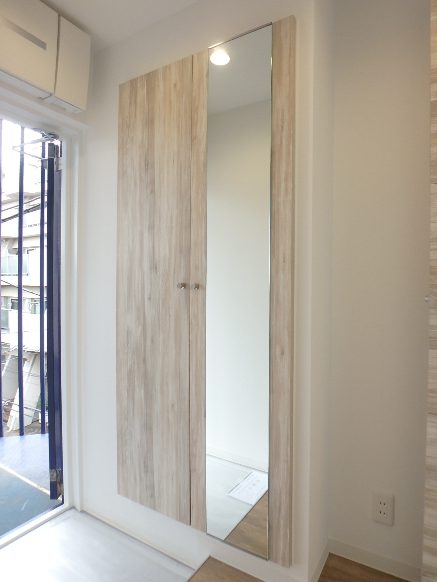 玄関には姿見付きのシューズボックスがあります。