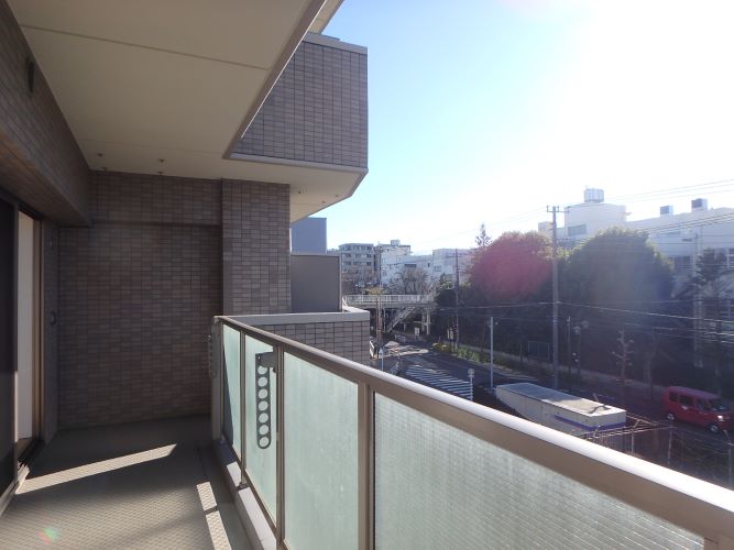 南向きの奥行き1.6m+L字型になっていて、ゆとりのあるバルコニーは遮るものもなく日当りもとても良好です♬