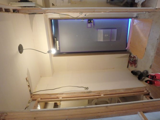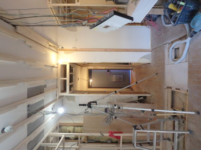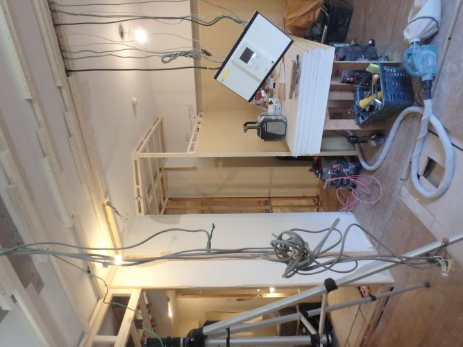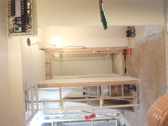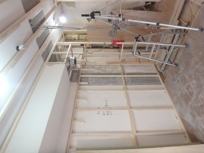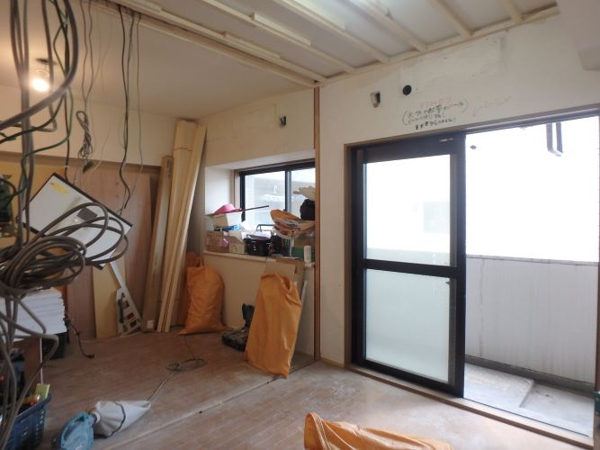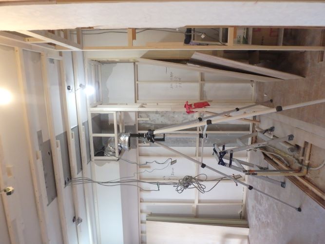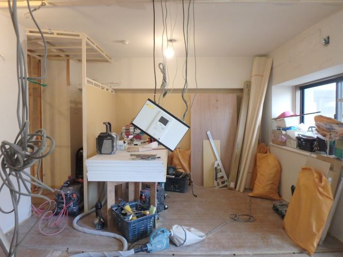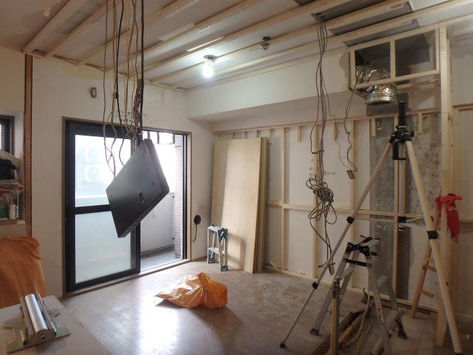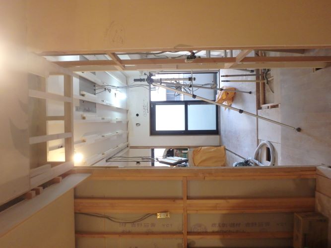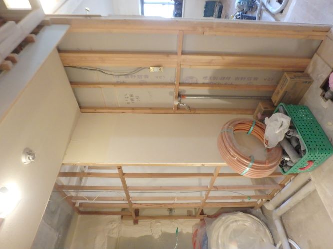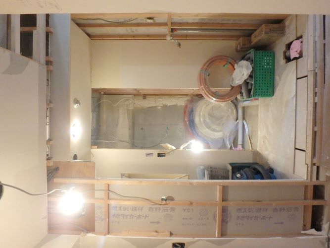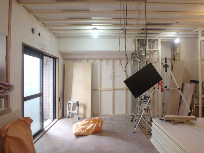 新しい間取りに合わせ、下地や間仕切りの組み立てが始まりました。