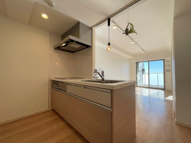 前方に建物が無く南向きバルコニーに面した日の差し込む明るいお部屋です。